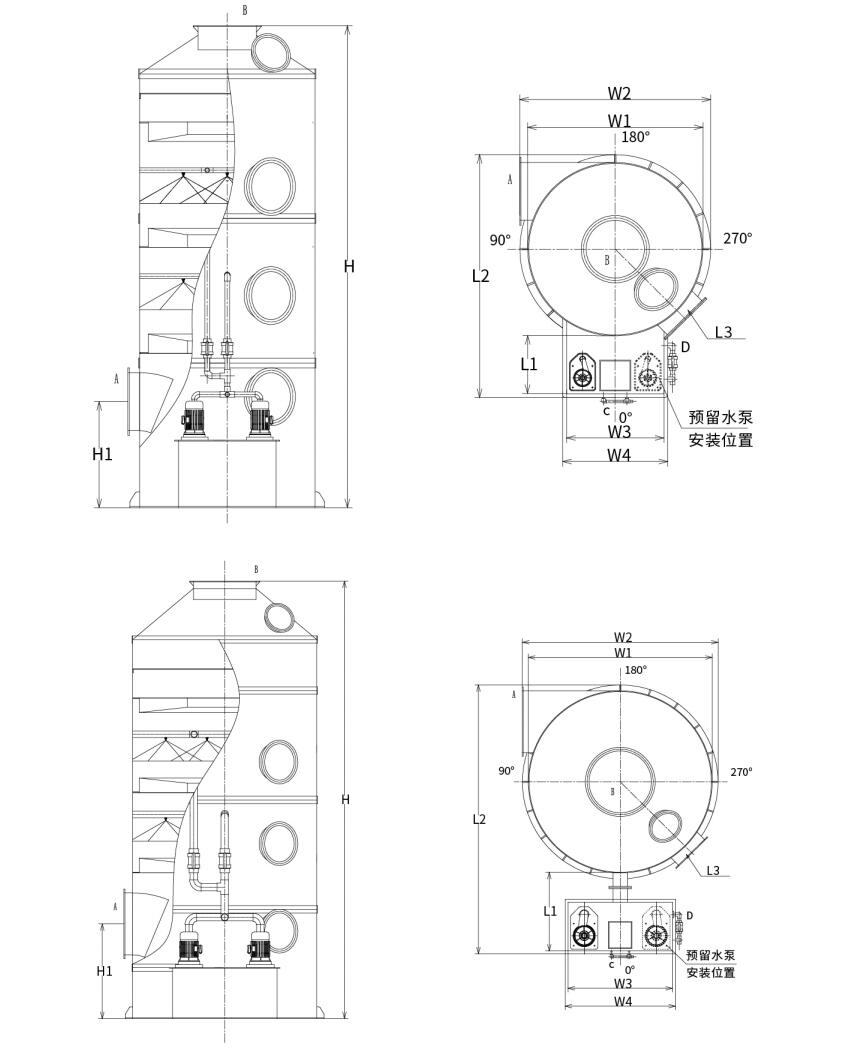 第二种:分体式水箱旋流板塔(塔直径:Φ2500mm-Φ3500mm)